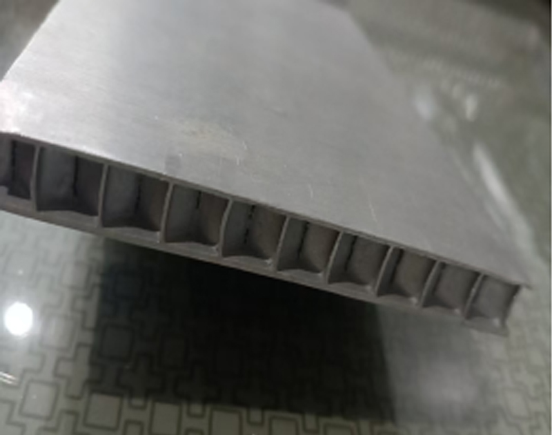 钎焊蜂窝板可以理解为一种用"焊接"取代"胶水"制造的高性能蜂窝结构板材它通过高温钎焊工艺,将蜂窝芯与面板之间的每一个连接点都变成永久性的冶金结合,彻底改变了传统蜂窝板依赖胶粘剂的历史.该结构具有耐高温(600℃)可焊接、轻质、高比刚度、隔音、隔热、阻燃、减震、吸能、电磁屏蔽等性能,同时也具有了更高的强度和刚度。克服了现有的胶黏式蜂窝板蜂窝芯受胶黏剂性能影响较大的缺点;其力学性能远高于胶黏材料力学性能,而且使制备工艺及操作手段更简单,各项性能均得到了显著提升,适合工业化生产。